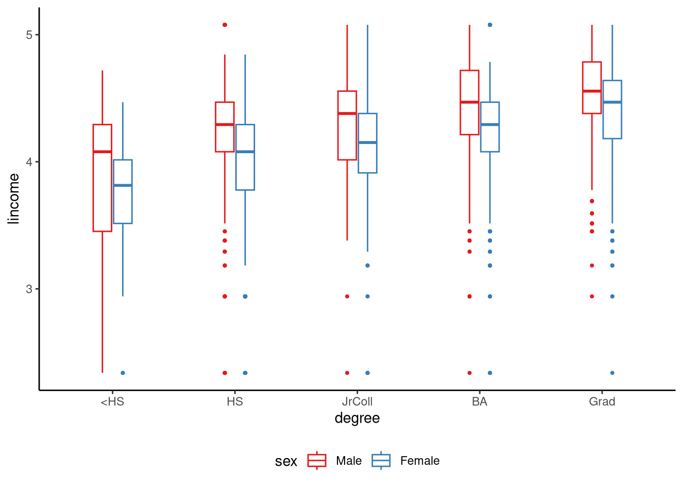 tukeyboxplot(y = lincome, x = degree, data = gss2021)