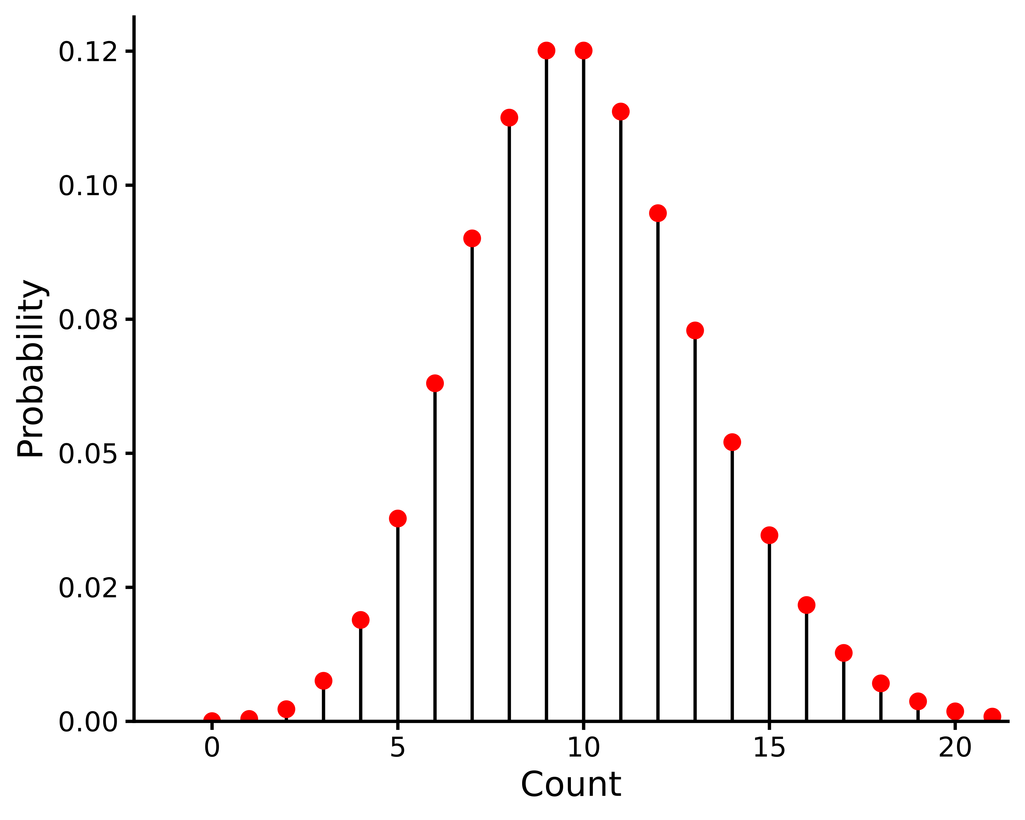 In summary, if our outcome variable is a count variable, an appropriate distribution with which to model it is the Poisson. The \(\lambda\) of this distribution is unknown and is something that we can establish from our model. If we choose the Poisson distribution for our outcome variable and want to model it as a function of a predictor or a set of predictors, then we need to use Poisson Regression.